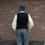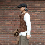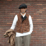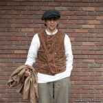 さらに、ウール混のライトメルトン裏地が身体を暖かく包み込み、ボタンの留め方によってさまざまな雰囲気を演出できるのも、このベストの魅力。インナーにもアウターにも使えて、大活躍間違いなし。店主おすすめの1枚です。