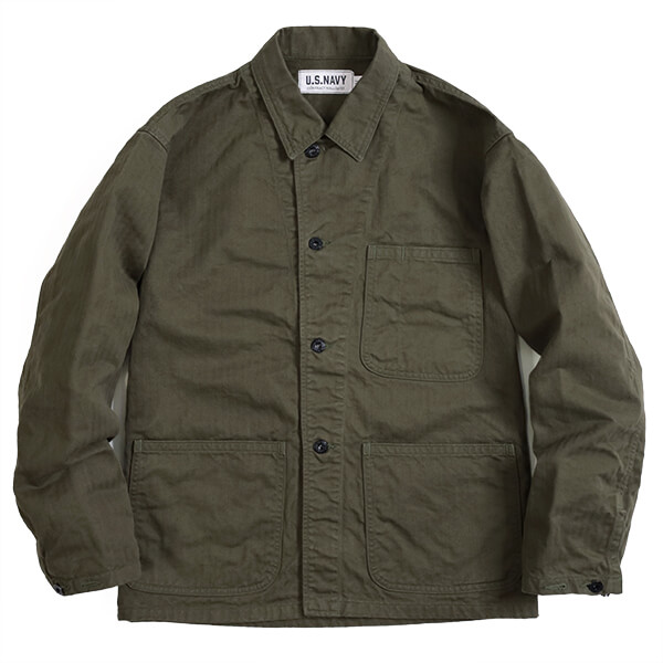 US NAVYで支給されていたワークジャケット “N-3” を再現。堅牢なヘリンボンツイルで仕立てられたオーリーブドラブのジャケットで、基地内での作業や時には艦艇内においても着用されていた。