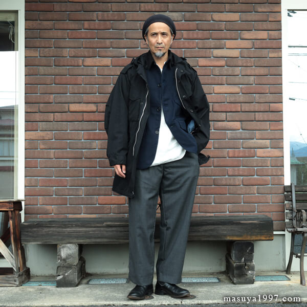 ・店主(173cm/60kg/w78cm)のコーディネートの詳細は、こちら↓【上記の着画とリンクしています】