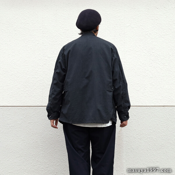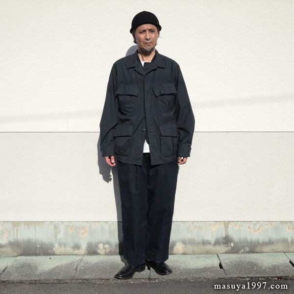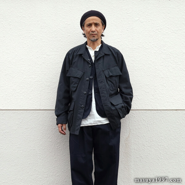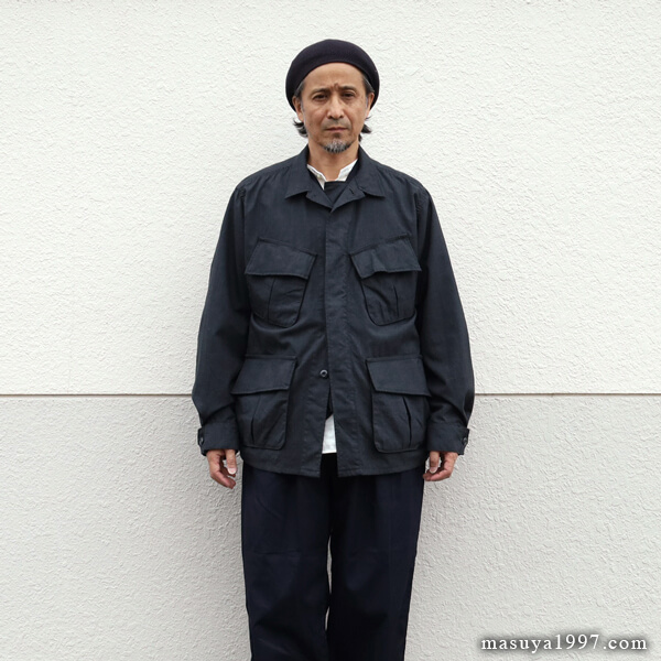 ベトナム戦争で大量に投入されたB.D.Uジャケットを基にしており、斜めに角度の付いた胸ポケットや独特のポケット形状が特徴です。