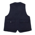 前身頃中心から内ポケットにアクセスできる半円型のポケット口は、アメリカ製ビンテージハンティングベストの特徴的なデザインです。前後4つの大きなパッチポケットがとても機能的で、様々な荷物を小分けして収納することができます。また大きい身幅に短い着丈のシルエットも特徴です。