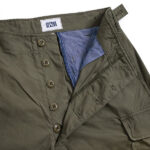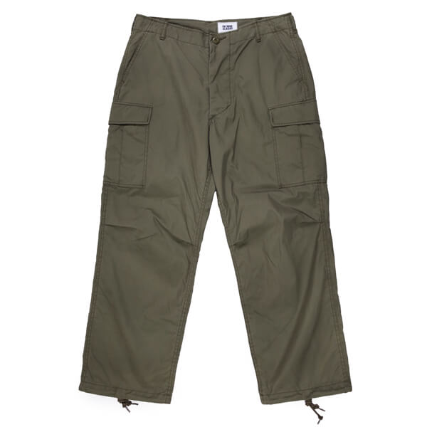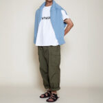 1960年代ベトナム戦争で使用された米軍ジャングルファティーグパンツ(2ndモデル)に着想を得た、ブランドのシグニチャーアイテムです。ジャングル戦を想定した軽量かつ機能的な設計を継承し、ゆったりとしたシルエットと豊富なポケットが特徴。無駄を省いた「必要最低限の機能美」を体現しています。