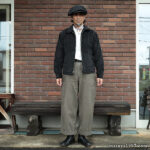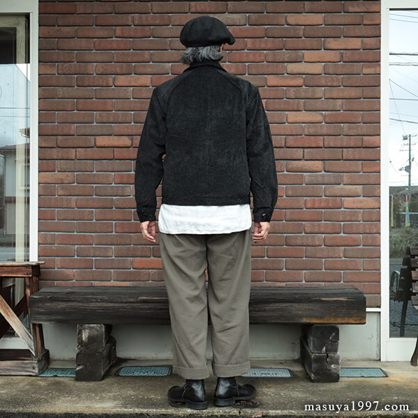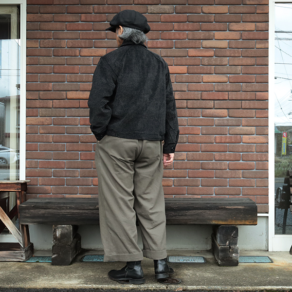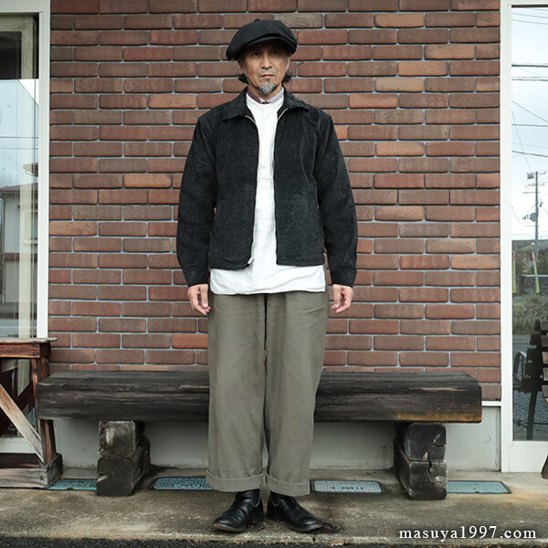 抜染プリントされたミックス調の7.5ウェル・コーデュロイ生地が、雰囲気抜群。レギュラーカラーのオーソドックスなフルジップ・ブルゾンとの相性もよく、着た時のかっこよさは格別です。デニムやチノなどベーシックなボトムと合わせたり、クラシックなトラウザーとの落ち着いた装いもおすすめ。裏地無しの1枚モノなので、Tシャツに羽織っても良いですね。