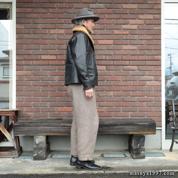 ・店主(173cm/60kg/w78cm)のコーディネートの詳細は、こちら↓【上記の着画とリンクしています】