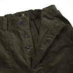 生地は、程よくコシのある13ウェルの細畝コーデュロイ。これまでもジャンゴで何度も使っているこの生地は、味わい深い色合いと、履き心地の良さが魅力。穿けば穿くほど洗えば洗うほど雰囲気が増していきます。穿きやすくてタフな生地なので、ついつい穿いてしまう、そんなパンツです。