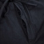 生地は、天然染料を職人技で染め上げたコットンリネンを使用。一年を通して穿いていただける程よい厚さの生地で、リネンが10%入っているので、風合いも良く、夏も着用できます。また、張りとコシのある生地感が、シルエットとも見事にマッチしています。
