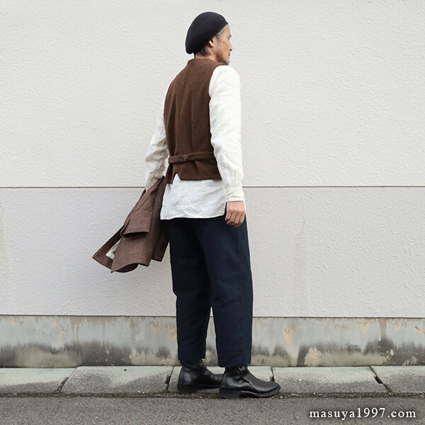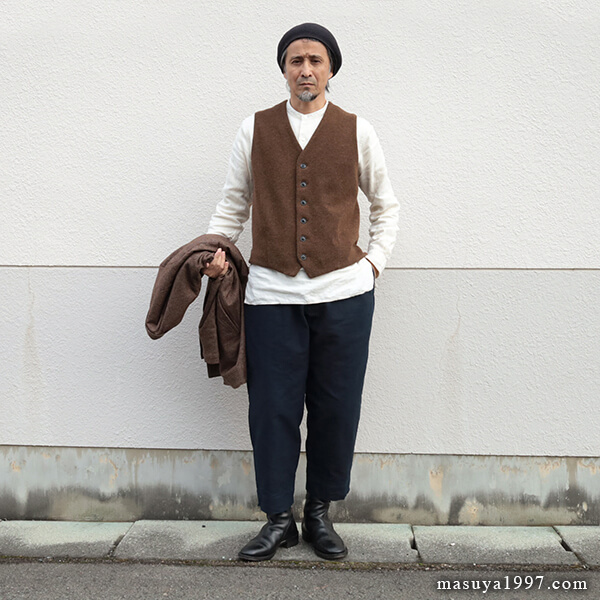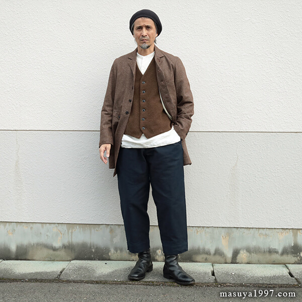 ・店主(173cm/60kg/w78cm)のコーディネートの詳細は、こちら↓【上記の着画とリンクしています】