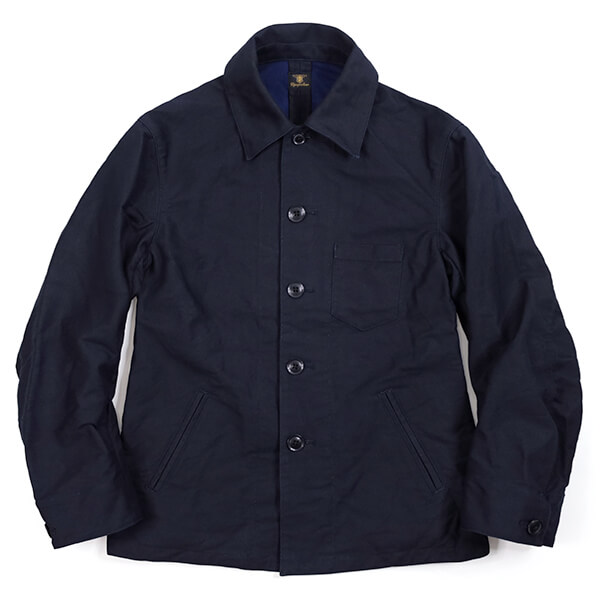 フランスのアンティークインディゴモールスキンのような生地感と、ワークジャケットでありながらどこか洗練されたデザインとの絶妙なバランスが、このジャケットの魅力です。