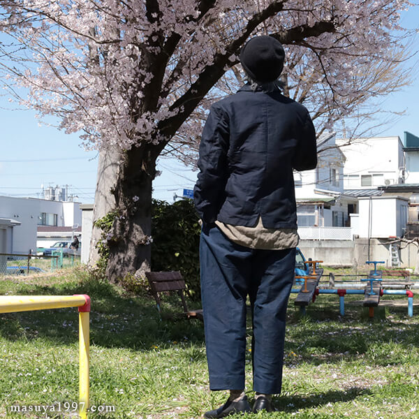 墨とインディゴが混ざり合うように色落ちしていく風合いも格別で、どこか洒落た雰囲気を感じさせます。