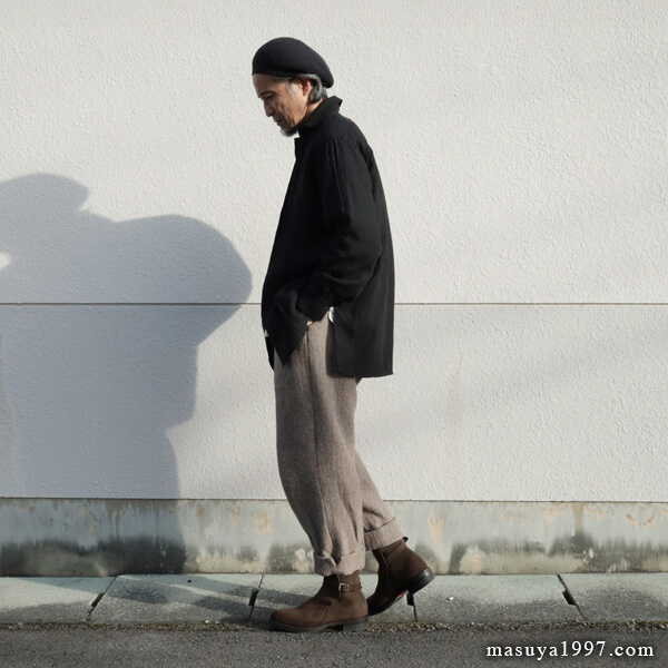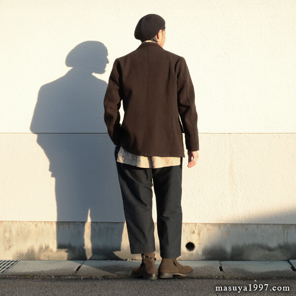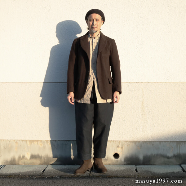 ・店主(173cm/60kg/w78cm)のコーディネートの詳細は、こちら↓【上記の着画とリンクしています】