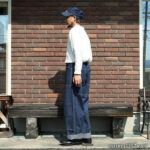 ヴィンテージのワークウェアに使われていたデニム生地を検証し、タテ糸の特徴的な短いムラ感にこだわって再現。ヨコ糸はネップ糸を使い粗野な風合いを出しています。ヨコ糸は移染した色目を出す為、染まっているかいないかの絶妙なアイボリーに染め、仕上げで毛焼きを省き、ヴィンテージの風合いを感じる生地に仕上げています。