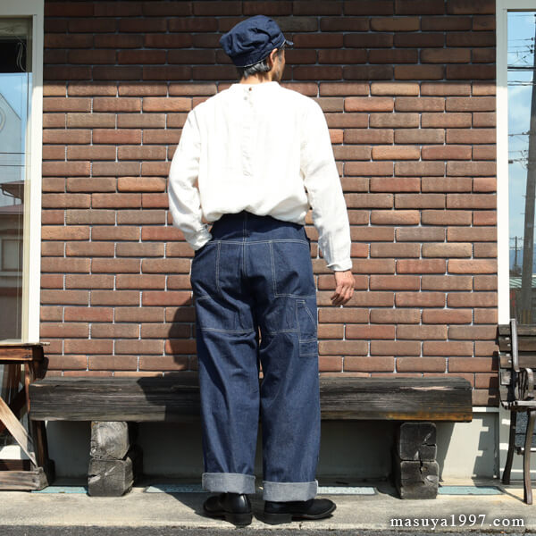 1930年代後期〜40年代初頭の一時期に実在した、滅多にお目にかかれないL社の4シリーズ・ペインターパンツをベースに、3シリーズの特徴でもあるダブルステッチ縫製を取り入れ、DURA-BILTの解釈として再構築したペインターパンツです。