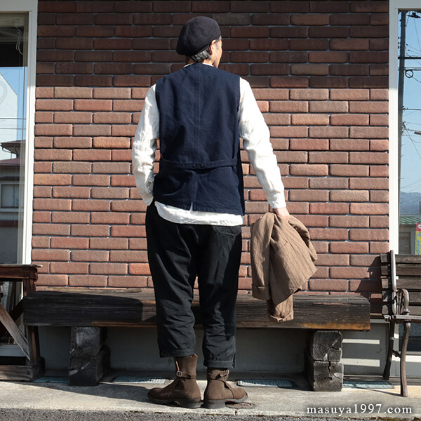 ・店主(173cm/60kg/w78cm)のコーディネートの詳細は、こちら↓【上記の着画とリンクしています】