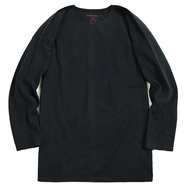 今作で使用している “MEDIUM OZ”(ミデイアム・オンス)の編地は、1年を通して着用できる適度な厚さで、程よいコシと柔らかさがあり、肌触りもなめらか。薄手(Light oz)の “Crew Neck Short sleeve” より厚手で、1枚で着るのにも適した生地感です。さらに、ネック開き具合や脇のパターン、シルエットのバランスも秀逸。着ていくことで体に馴染んでいく極上の風合いと着心地の良さに、アンダーシャツの本質を感じる1枚です。(長袖なので、夏以外の3シーズン着用できます。)