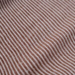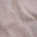 表糸はいつものスーピマ綿の無染色の生成糸。裏糸は“RUSTIC JERSEY”のスーピマ綿の落ち綿を糸染め。同じ綿同士でも紡績の違う糸を組み合わせるというアプローチで製作したリブ編みの生地です。スーピマの通常の糸での表現だと、きれいで整った表情のなめらかさや腰の柔らかさが立ちますが、こちらは裏糸(落ち綿)のムラ感、膨らみ、吹き出し具合が編み地に対してうまく作用し、肌側に自然なざらつきと素朴さが感じられる絶妙なの風合いを作り出しています。また、“Heavy Weight Rib” より度甘のリブ編みの生地は、伸縮性と型崩れしにくい耐久性のバランスも絶妙です。
