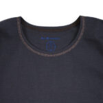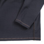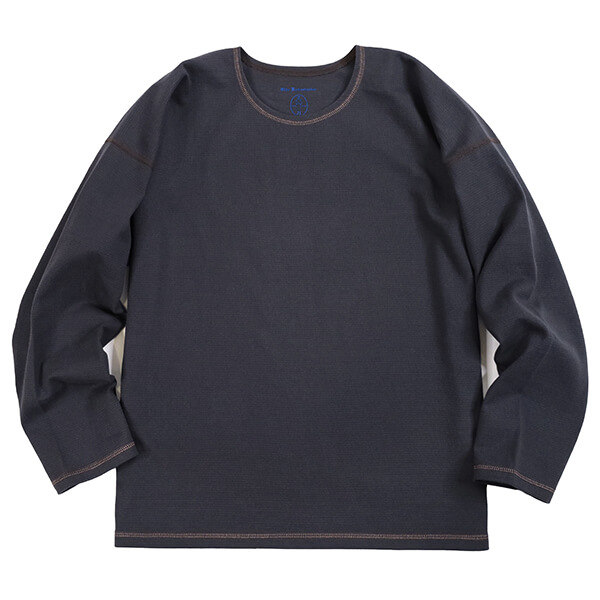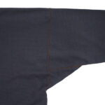 また、“RUSTIC JERSEY” は、着込むことでよれていく様にも味わいと格好良さが感じられる編み地ですが、この “MOIRE STRIPE JERSEY” は型崩れしにくく、安定感のある編み地に仕上がっています。それでいて、生地が過度に硬いわけではなく、ヘビーオンスのタフな素材とも異なり、適度な柔らかさと軽やかさを兼ね備えています。肌離れも良く、快適な着心地です。水を通すことで、新品時よりもこの生地の良さがより感じられるようになります。
