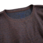 この “TWEEDISH RIB“ は、コットンシルク(コットン86%・シルク14%)の糸を使い、度詰めのリブ編みで仕上げたやや肉厚な編み地。シルク特有のサラッとした肌当たりと、保温性を備えながらも蒸れにくい特性を活かした、快適な着心地が特徴です。