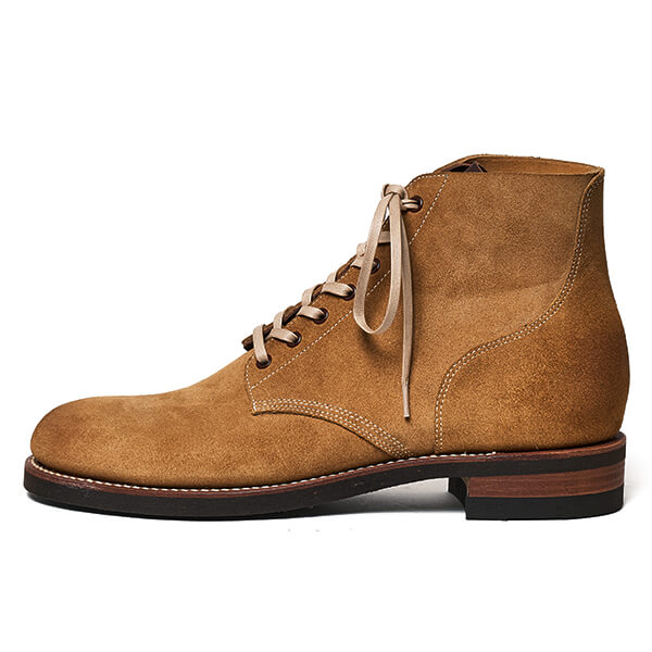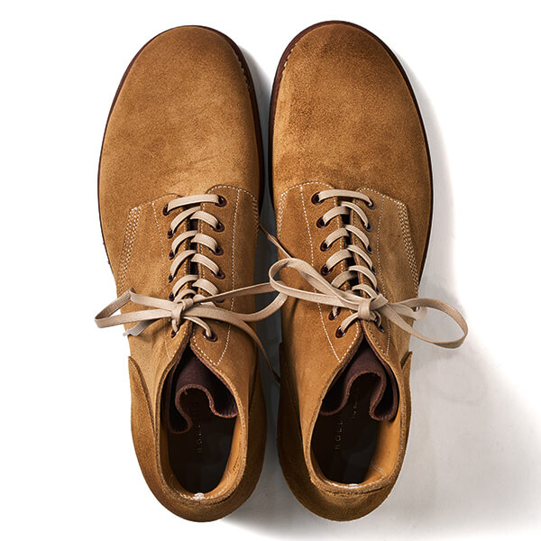 数多くのブランドがそのレプリカを手がけるミリタリーシューズの名作 M-42ブーツと M-43サービスシューズ。本作は、その2足の「良いとこ取り」を目指してデザインされた1足です。