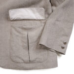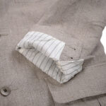 本作では、8番という非常に太いリネンを使用。素材本来の粗野な表情やスラブ感を損なうことなく引き出すため、古い紡績技術を駆使し、このクラス特有の迫力ある風合いを表現しています。さらに水通し仕上げを施すことで、いっそう奥行きのある雰囲気に仕上げています。