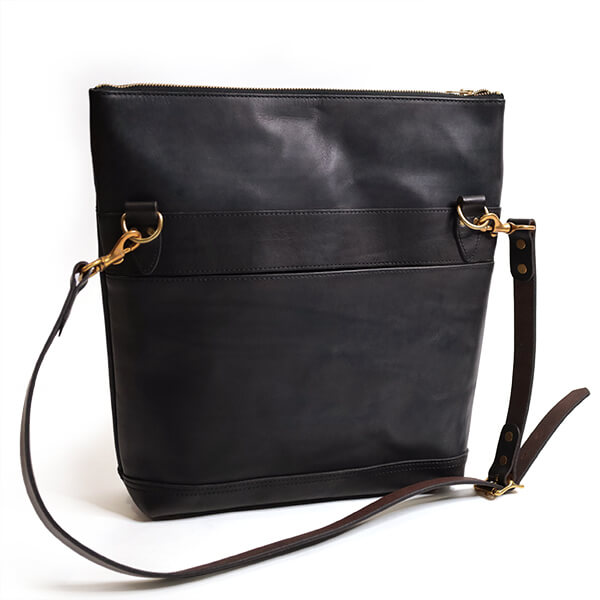 ヴィンテージのドキュメントケースをベースにした2WAYトートバッグです。レザーショルダーを着脱によって、ショルダーバッグ、クラッチバッグになる2WAY仕様。本体上部を折り畳んでフラップ状にしてもお使いいただけます。