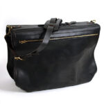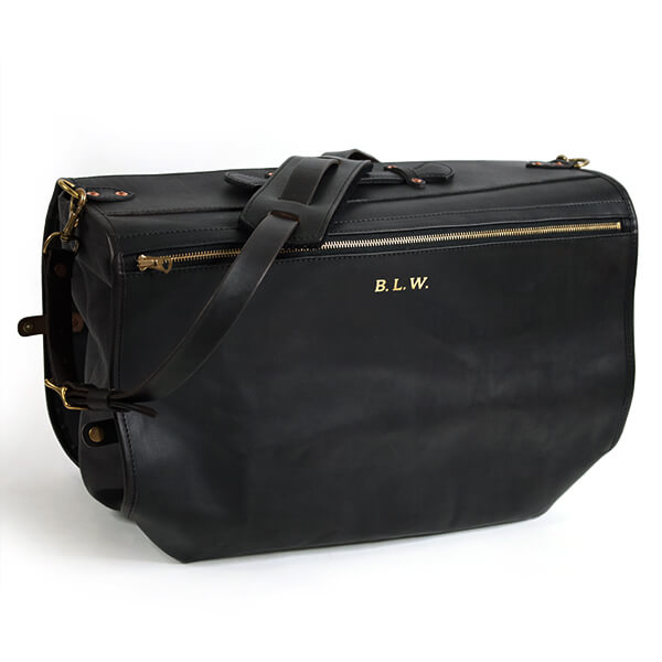 陸旅で馬やラクダに跨がせるための双子式のパニエバッグをモダナイズしたショルダーバッグです。トラベル仕様のラージサイズで、トランクのようなクラシックなフォルムが特徴的なモデルです。両面の外装ポケットと、内装に付属するライニングバックにたくさんの荷物を収納できます。ライニングバッグを取り外して、単体で使用することもできます。余ったスペースには、コートやシャツ、傘といった荷物を「魅せて」収納することもできます。『荷物を詰め込んで放浪したくなる』を意味する”Baggage” ”Load” ”Wanderlust”の頭文字をとったB.L.W.が刻印されます。
