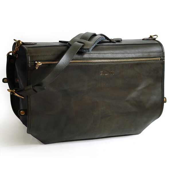 陸旅で馬やラクダに跨がせるための双子式のパニエバッグをモダナイズしたショルダーバッグです。トラベル仕様のラージサイズで、トランクのようなクラシックなフォルムが特徴的なモデルです。両面の外装ポケットと、内装に付属するライニングバックにたくさんの荷物を収納できます。ライニングバッグを取り外して、単体で使用することもできます。余ったスペースには、コートやシャツ、傘といった荷物を「魅せて」収納することもできます。『荷物を詰め込んで放浪したくなる』を意味する”Baggage” ”Load” ”Wanderlust”の頭文字をとったB.L.W.が刻印されます。